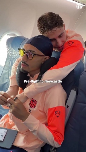 体育资讯03月08日讯 巴萨官方发布球队乘机抵达英国纽卡斯尔的视频,亚马尔下飞机后对着镜头调侃道:我现在只说英语。