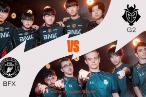 比赛往后进行,BB的奥恩开始成形!关键大龙团Caps沙皇舍命一推二配合队友秒掉了Diable卡莎!BB的奥恩收割残局,这波打完BB奥恩战绩来到5-0-7了啊!此时BFX正面团已经打不过了啊!G2连拿两条小龙,没让BFX收下土龙魂!最终的下路团Hans Sama库奇被秒!但是Caps沙皇伤害成了啊!G2团灭BFX,从下路一波结束比赛,拿下三个赛点!