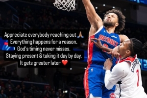 今天,坎宁安晒照并写道:“感激每个联系我的人。凡事皆有其因由。上帝的安排总是恰到好处。保持当下,一天一天坚持。我归来之时会更出色。”