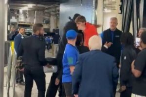 GIF-詹姆斯赛后球员通道与弗拉格主动拥抱
